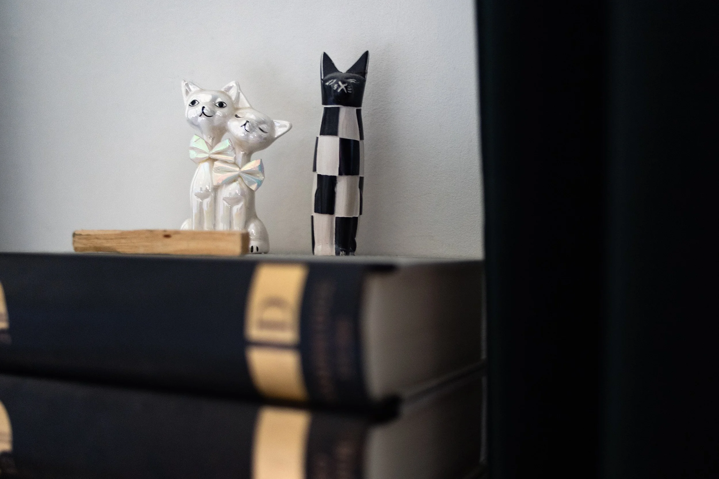 Iridescent cats I got from a friend for my 9th birthday, black and white cat from my mother late 90s.